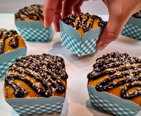 Estos bizcochos son un pequeño capricho de calabaza y chocolate: la miga es tan tierna que casi se deshace al tocarla, y en el centro esconde un corazón de chocolate que se derrite como si tuviera vida propia.