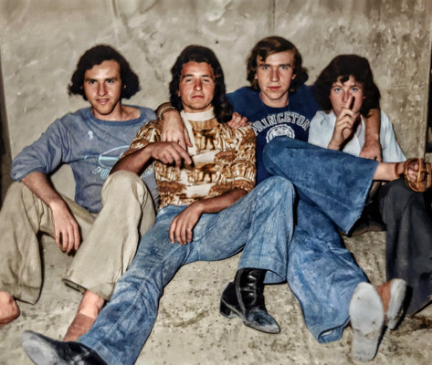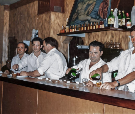 Un recuerdo de 1974 aproximadamente, los amigos disfrutando de la noche de fiestas igeana.