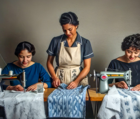 Un recuerdo muy antiguo, una igeana y dos vecinas que bajaban de Cornago trabajando con sus máquinas de coser.