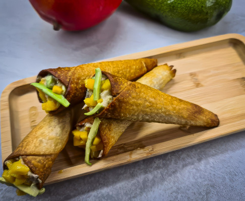 Estos cucuruchos crujientes de atún, mango y aguacate son una forma sencilla de transformar ingredientes básicos en un aperitivo vistoso y fresco.