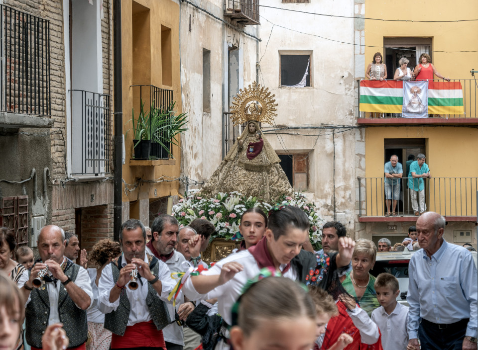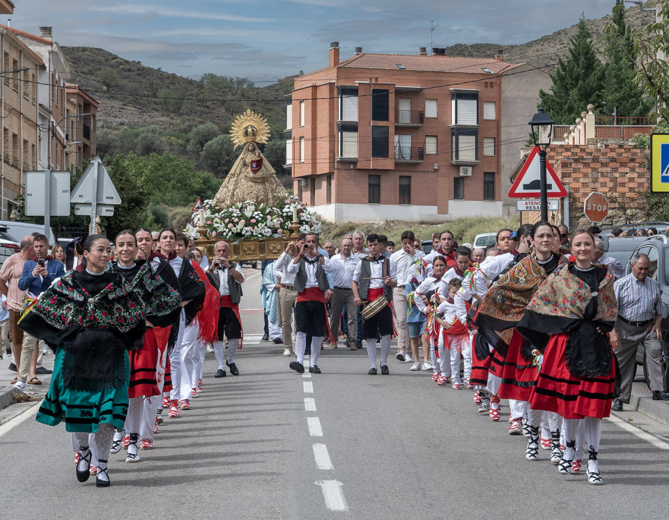 Procesión de nuestra patrona, la Virgen del Villar por las calles de Igea y Misa Mayor en su honor en la parroquia de Nuestra Señora de la Asunción. Pasacalles a cargo del grupo de danzas de Igea durante la procesión.